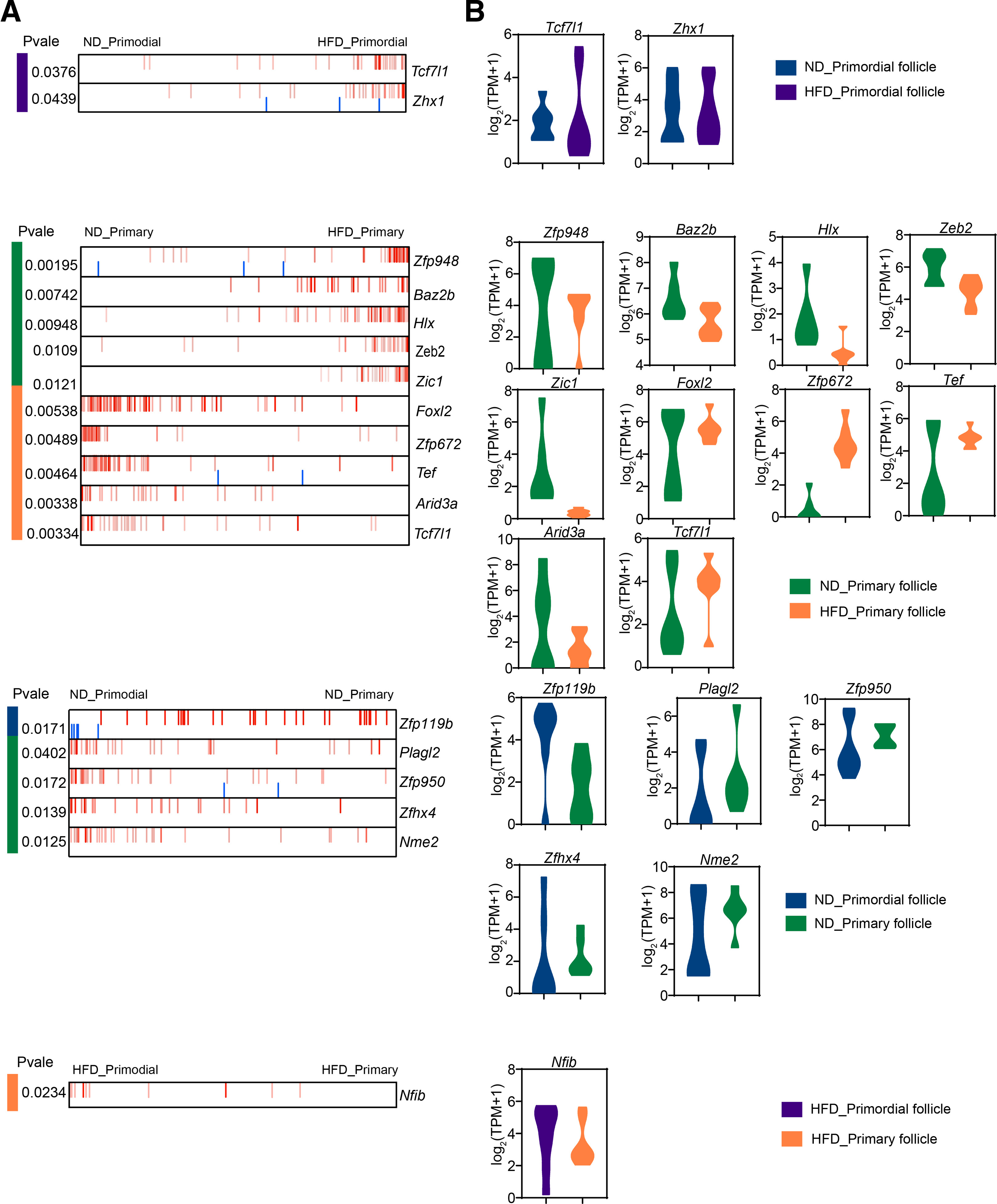2、ND和HFD小鼠原始卵泡和初级卵泡的转录谱