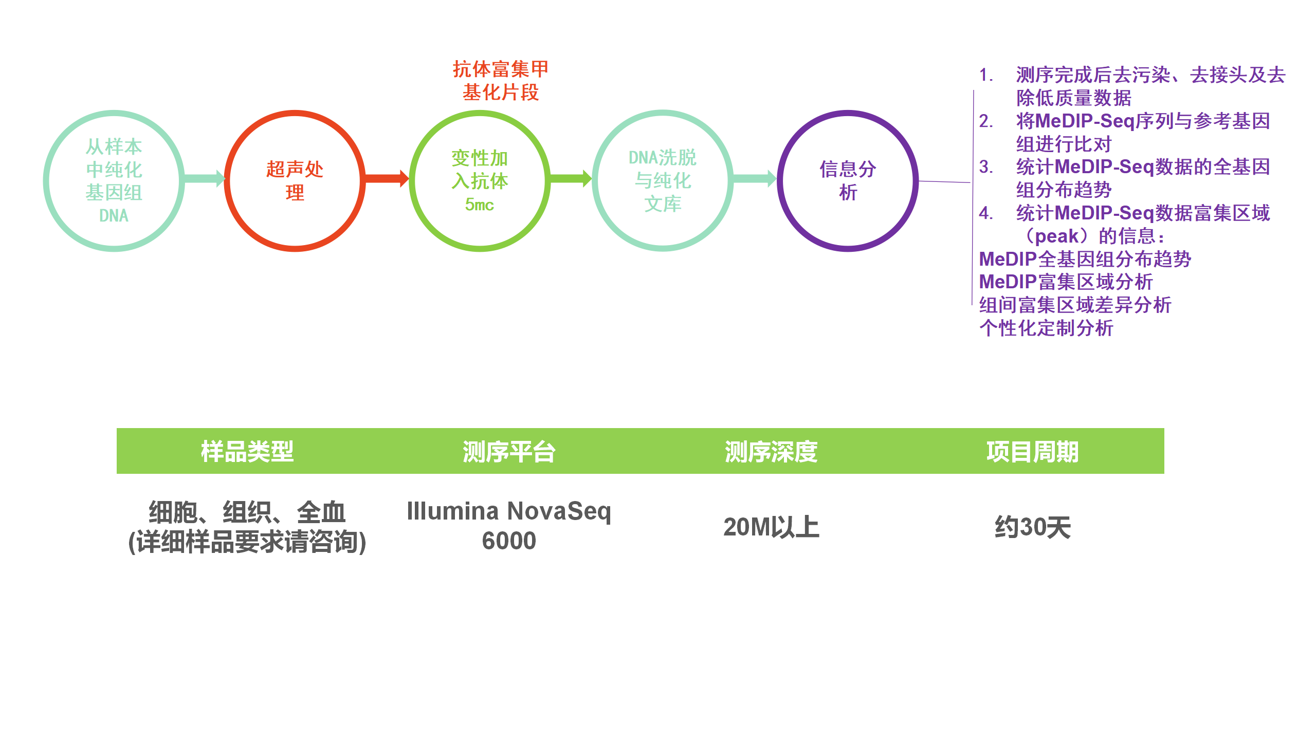 检测范围广:覆盖整个基因组范围的甲基化区域。 高性价比:基于抗体富集的测序方法,提高数据利用率。 精确度:非单碱基甲基化分辨率,只能定位甲基化富集区域。 偏好性:抗体富集偏向高甲基化CpG区域。